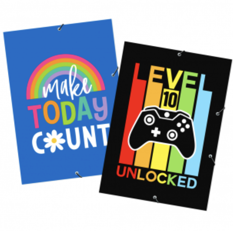 Carpeta con elástico y diseño, tamaño 26 x 36cm. 4 diseños disponibles