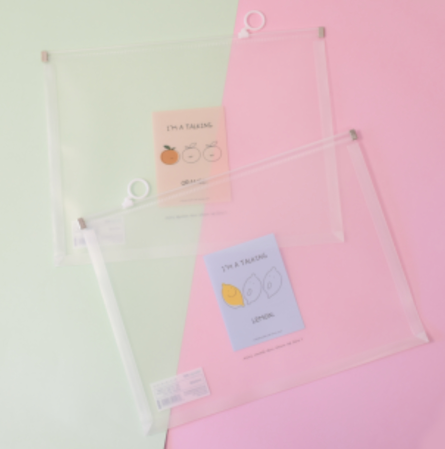 Carpeta Ziploc con temática frutas y verduras cute, tamaño A4. 4 Diseños disponibles