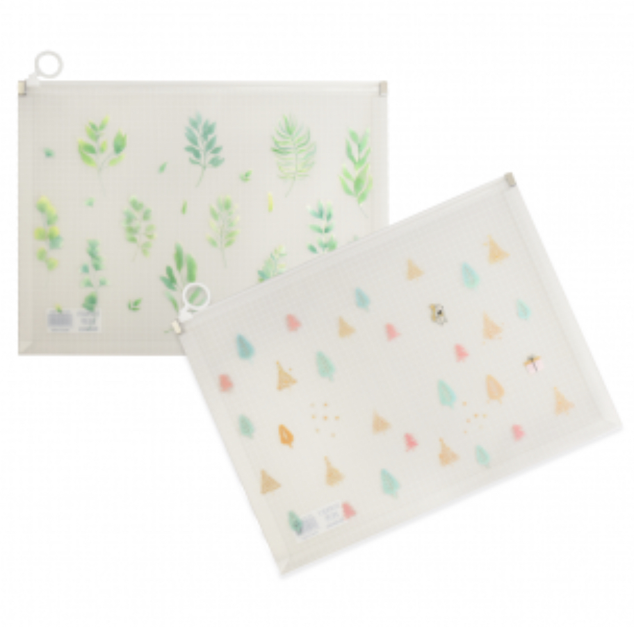 Carpeta Ziploc tematica hojas y flores, tamaño A4