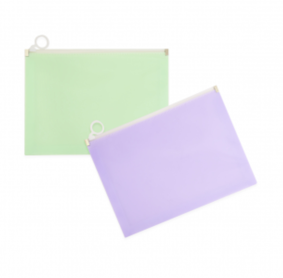 Carpeta de PVC con ziploc colores pastel, 4 colores disponibles en stock. Tamaño A5