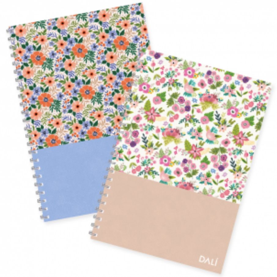 Cuadernolas floreadas marca Dalí, Súper tapa dura, 80 hojas rayadas. 4 Diseños disponibles
