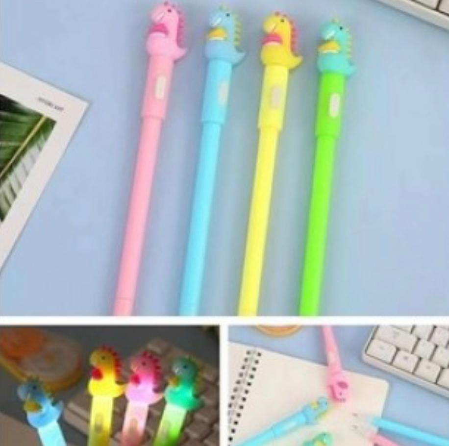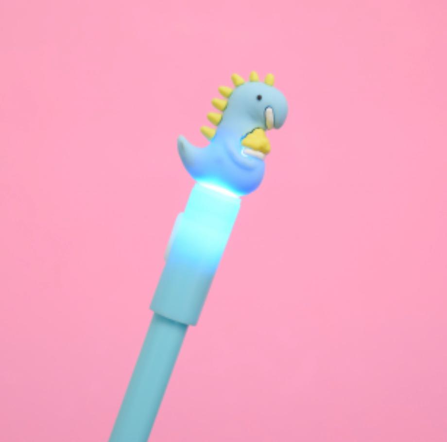 Lapicera de dinosaurio con luz, estilo fibra. 4 Colores disponibles