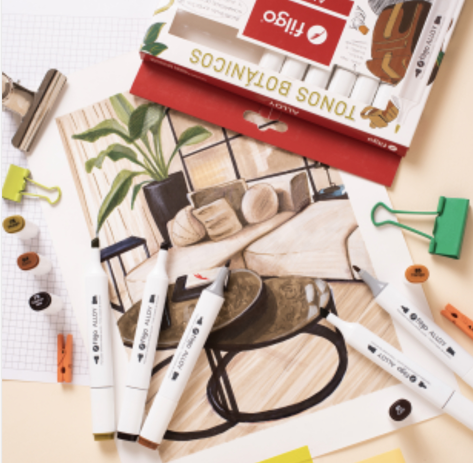 Marcadores doble punta Filgo, Caja de 12 unidades, colores Botánicos