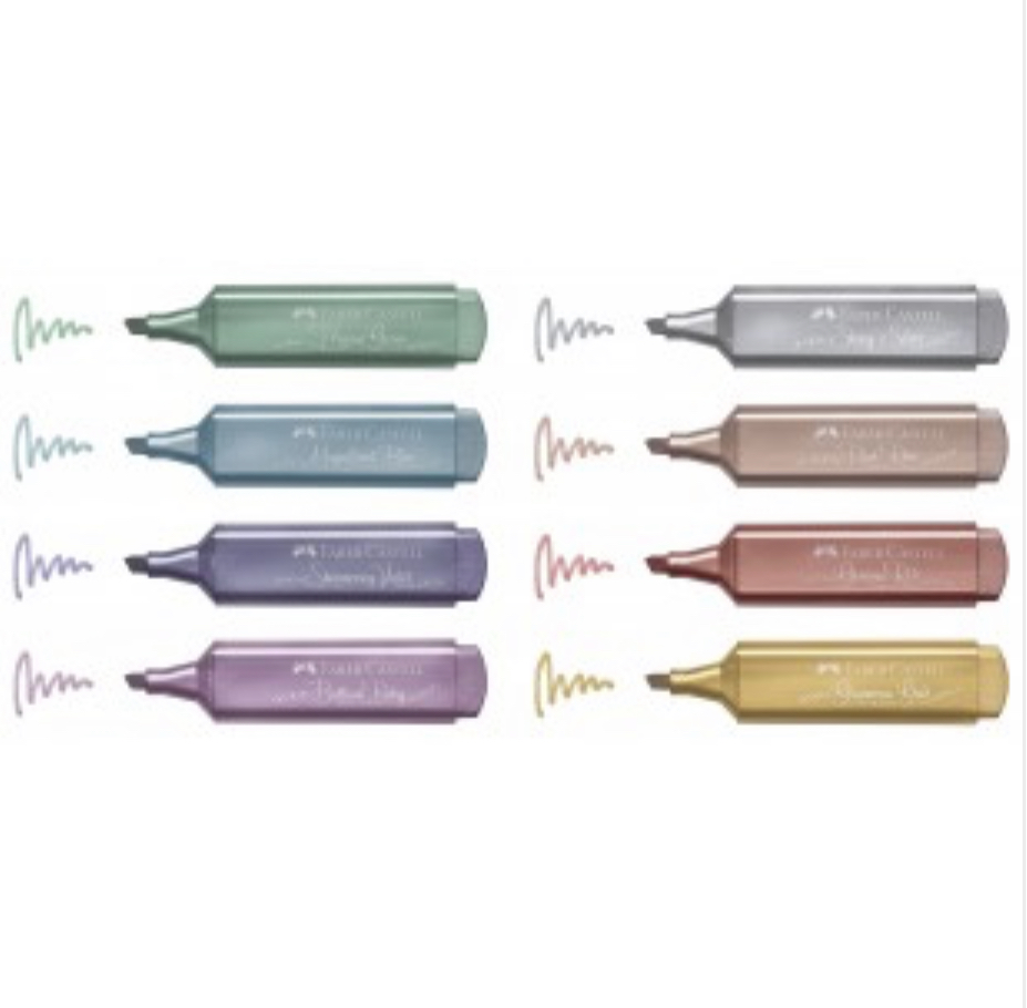 Resaltadores metalizados Faber Castell x8 unidades, colores variados.